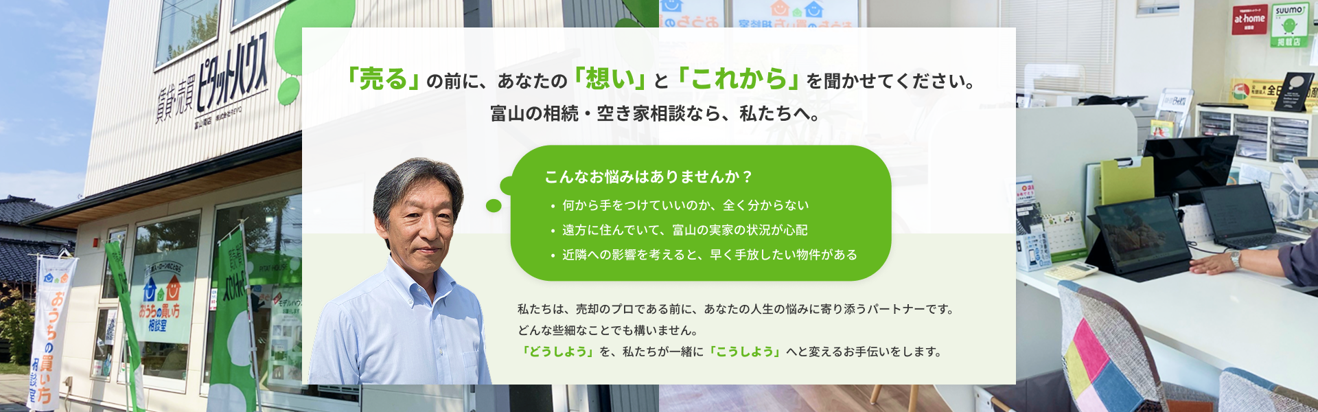 - ご家族から受け継いだ大切な不動産のお悩みは、私たちにお任せください。「遠方で管理が大変」「どうしたら良いかわからない」といったお声に数多くお応えしてきました。お客様一人ひとりのお気持ちに寄り添い、最善の道筋を一緒に見つけます。